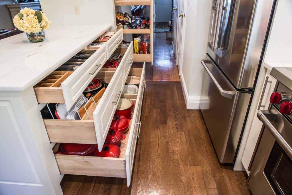 The kitchen remained in the same location, but its organization and flow were completely rebuilt.