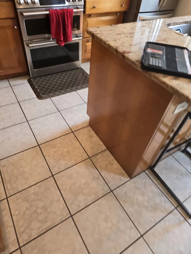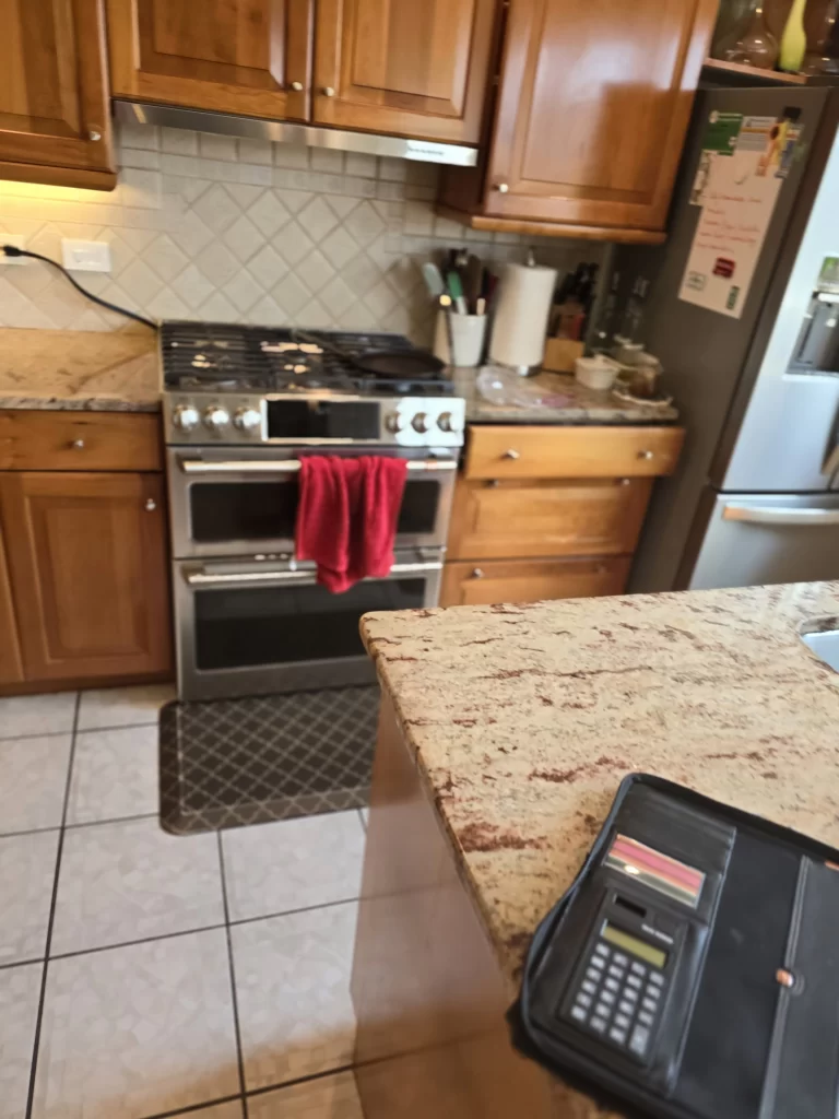 The kitchen itself wasn’t small. It just felt tight. The entry sequence forced you toward a blank wall, then a hard right, then a hard left before finally arriving in a dated cherry cabinet layout that closed itself off from the rest of the home. A large bay window poured light into the kitchen — but that light stopped there. A peninsula blocked movement. The dining room was boxed in. The view, one of the home’s strongest assets, was barely experienced.