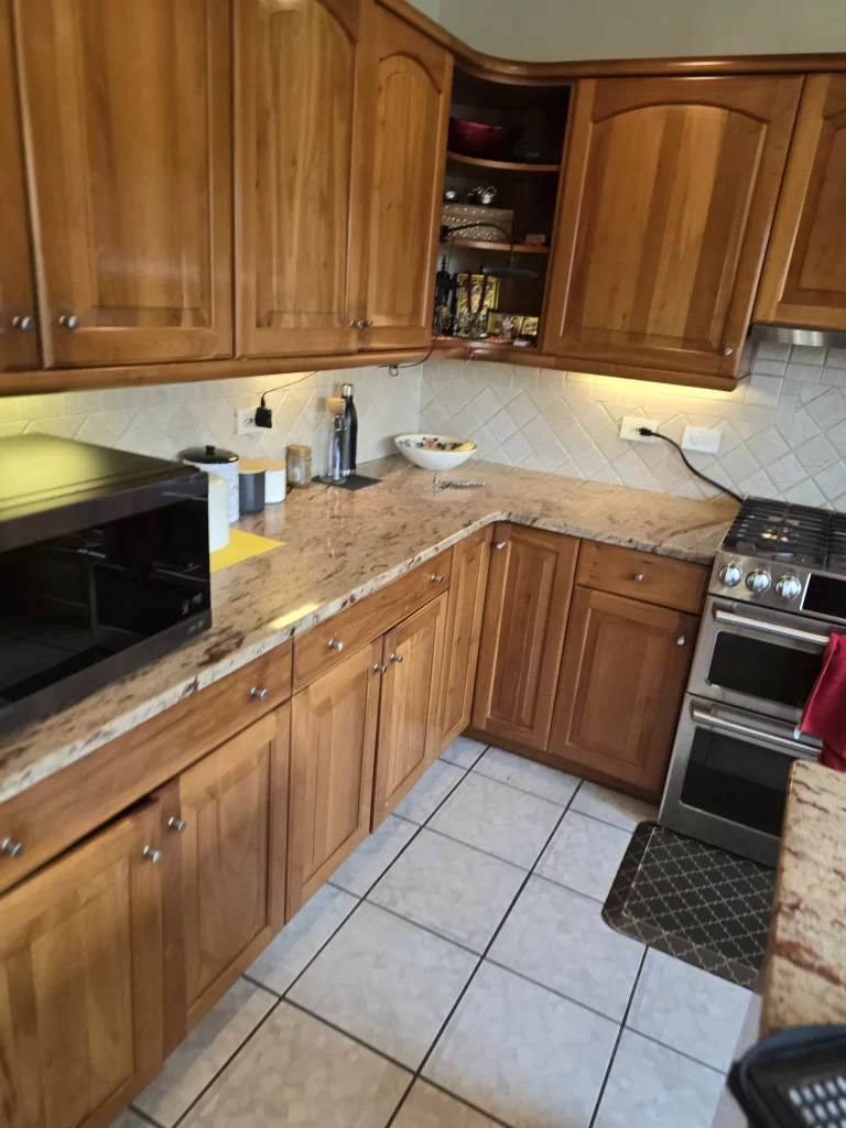 The range and sink remained in place — no need for unnecessary plumbing relocation. The budget was respected where it mattered.